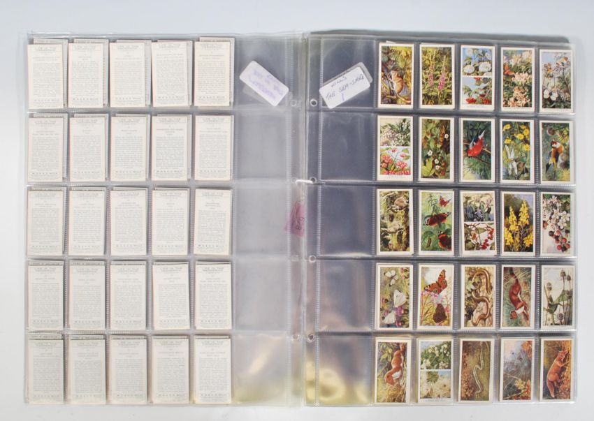 A collection of ten full sets of Wills nature related cigarette cards to include; Flower Culture in Pots, Pond and Aquarium, Life in the Hedgerow, The Sea Shore, Wild Flowers (second Series), life in the Tree Tops, Flowering Trees, Dogs, Garden Flowers and Pond Aquarium.