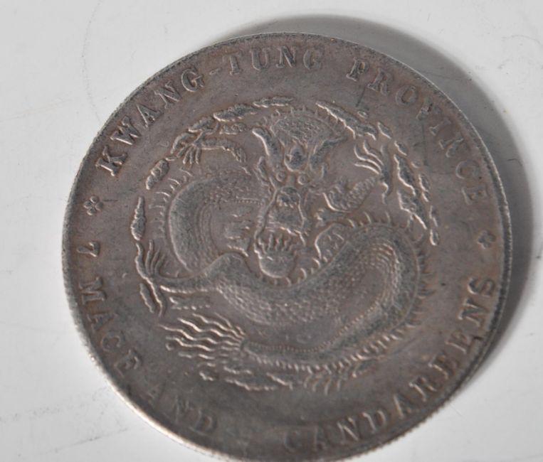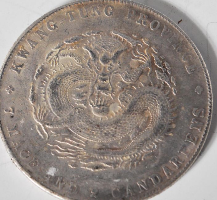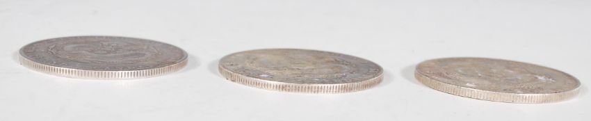 Three Chinese Kwang-tung Province 7 Mace and Candareens silver coins.