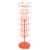 A vintage retro 20th Century revolving metal card shop point of sale shop display stand, raised on a circular base with a multi sectional metal stand above , in the original colourway.