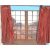 A pair of 20th Century shop display / salesmen / apprentice pieces one of a low sideboard having three drawers above three cupboard doors raised on a plinth base decorated with red curtains and a rural window scene. The other of a stove / fireplace raised on a tile styled floor with stove finished in black. Biggest measures 90cm tall by 53cm wide.