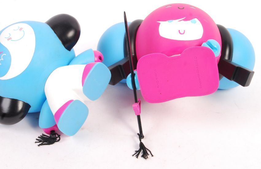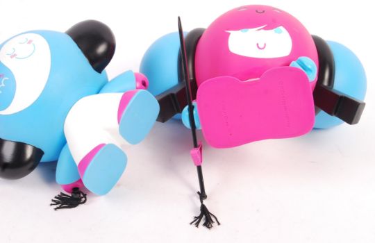A pair of unusual Veggie Something 2006 vinyl action figures of large size. Both with Chinese / Japanese character marks and complete with sword weapon accessories. Measures: 16cm tall.