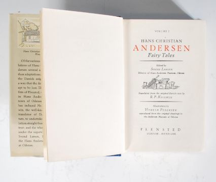 A dual book set of Hans Christian Andersen Fairy Tales world edition volume one and two. Edited by Svend Larsen and illustrated by Vilhelm Pedersen, published by Flensted Odense, Denmark in the poet's native town. Illustrations throughout, with both books retaining their dust covers and original cardboard outer sleeve.