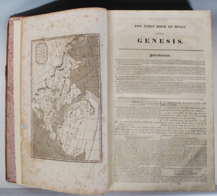 A 19th Century Georgian The Holy Bible with a complete commentary selected and arranged from the writings of Mathew Henry, Gill, Brown, Doddridge and other celebrated commentators, by Reverend Samuel Clarke, embellished with a series of superb engravings from original pictures by the great masters and a complete Atlas of sacred geography. London published by S.A Oddy, 2 Ivy Lane. 1813.