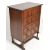 A 1920's stained pine chest of drawers on stand. Raised on turned leg fixed stand united by stretchers. Above, a bank of 4 graduating drawers with knob handles and detailed carved sectioning. Flared top above. 102cm 77cm x 45cm.