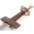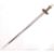 A North African Sudanese Taureg / Takbouba double edged sword having a leather weaved grip, disk pommel with later repaired end, rectangular leather guard and straight double edged triple fullered blade with crescent moons. Measures; 97cm overall.