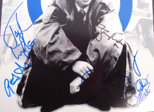 Quadrophenia (1979) -A beautiful 16x12" Quadrophenia photographic montage photo, signed by many of the original cast. All obtained in person by the vendor, and each signed in either blue or black marker. To include; Phil Daniels, Leslie Ash, Phil Davis, Toyah Wilcox, Garry Cooper, Mark Wingett, John Altman, Trevor H. Laird, Gary Shail and director Franc Roddam. x10 autographs in total. Wonderful presentation item. Rare.