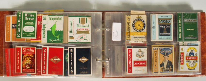 An album of vintage early 20th Century cigarette packets to include desiree, Gold Flake, Countryman, Tiger, Orchid virginia blend, Robin, Hazel Nut, Double Ace, Simba, White Horse, Capstan, King Stork, Three Cats etc.