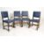 An early to mid 20th century Jacobean revival oak refectory dining table and set of 4 faux leather chairs. The table being raised on pierced supports united by stretcher having rectangular top above. The chairs being raised on block and turned legs with blue faux leather seats and back rests. Measures 75cm high by 153cm wide by 76cm deep.
