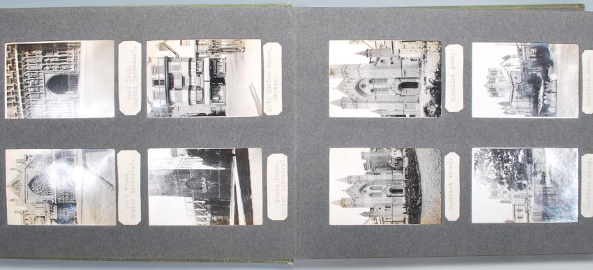 An early 20th Century black and white photograph album depicting landscape images from towns around the UK including Brixham, Exeter, Buckfast, Broadstairs, Ramsgate, Margate, Canterbury Cathedral, Bournemouth, Swanage, Christchurch, Sandbanks, Winchester, Lacock, Hillsborough etc. Together with a collection of Victorian portrait photographs taken by photographers from around Bristol in original mounts.