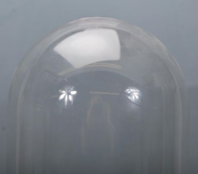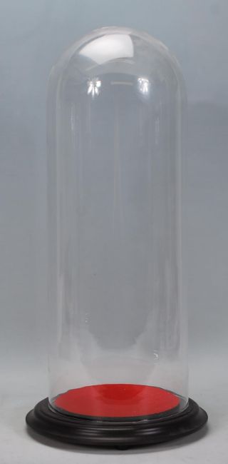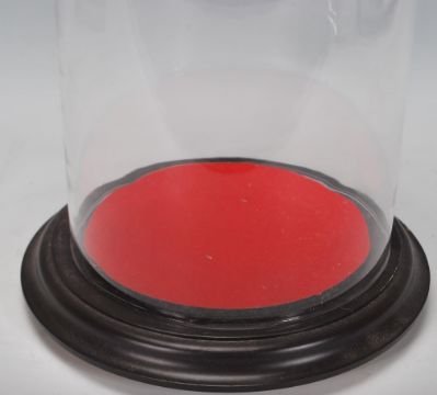A 20th Century tall glass display dome set to a dark socle base with red velvet liner. Measuring 48cm tall.