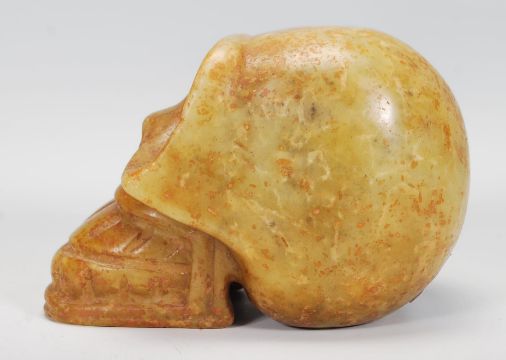 A 20th Century carved hard stone carving of a Monkey skull possibly Tibetan, the features carved with over exaggerated features.  Measures 10cm high.
