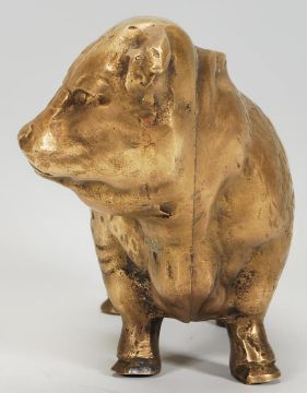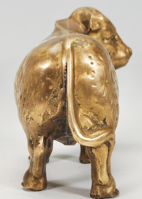 A good double cast believed 19th / 20th century brass bull. Cast in two sections and of heavy construction. Measures 15cm high.