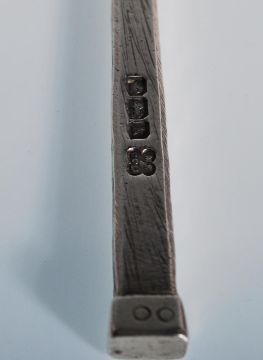 An early 20th Century silver hallmarked spoon in the form of a tennis racket with wooden handle and finely engraved bowl. Marked to verso W.L.T.A Div. II 1927. Hallmarked for Sheffield date letter K 1927, makers mark for Martin Hall & Co Ltd. Weighs 28.7g. Measures 14cm long.
