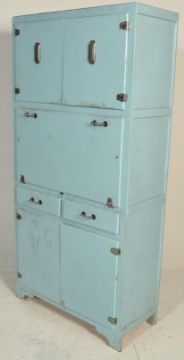 A vintage mid 20th Century kitchen unit having flared enamel work top over a bank of three drawers and single door raised on block feet.