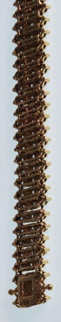 A 9ct gold and diamond ladies bracelet, each link adorned with 3 round cut diamonds. Estimated total weight approx 2cts. Length 18.5cms / Approx 18.1g