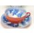 A collection of Chinese ceramics to include blue and white lidded tea cups with matching saucers together with three matching tea cups and saucers, the cups decorated with blue and white designs to the inside of cups incorporating carp and fauna. The outside of the cups with an ochre glaze, character marks to base.