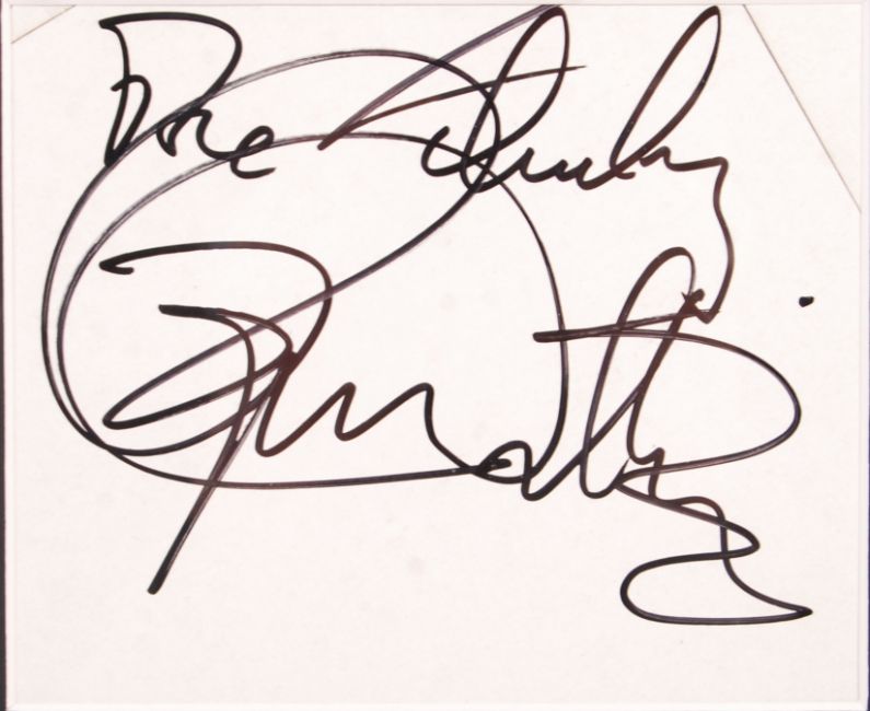 The Who - Roger Daltrey & Pete Townshend - a beautiful autograph display, comprising of two signed cards by Daltrey & Townshend, professionally mounted alongside images of them on stage. Both obtained in person by the vendor. Framed and glazed to a total size of 55cm x 44cm. Rare.