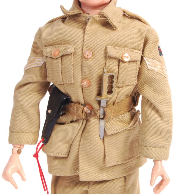 An original vintage 1960's (1967) Palitoy made Action Man ' Australian Jungle Fighter ' action figure. With uniform - comprising: hat, tunic, belt, shorts, boots, knife, pistol and holster. Painted head variation. Rare.