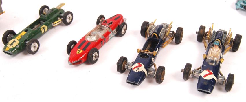 A good collection of 60+ original vintage diecast to include: Corgi Toys made models: y, Aston Martin DB4, Sunbeam Imp, , Smiths Carrier Van, Lancia Fulvia, Oldsmobile Toronado, Ford Mustang, Jeep FC150, International 6x6 truck, Chevrolet Corvette Stingray, Carrera 6, Land Rover, Riley Pathfinder, Rover 2000, Ford Mustang, V12 Jaguar E Type, Austin Mini Van, Marcos Volvo 1800, Ferrari Berlinetta, Lotus Elan S2, Corgi Juniors, Husky Batmobile x2 and 20+ Matchbox models. All in fair-good Great collection