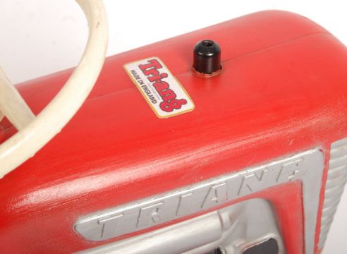 A charming original vintage 1960's Tri-ang / Triang made child's pedal car ' Tractor '. Plastic body in red, with silver painted engine and grill. Metal chassis and pedal arrangement. Marked 'Triang' to side. Metal seat. Wonderful complete example. Measures approx 70cm long. From a private collection of vintage pedal cars. Most of which have been fully and professionally restored to a better-than-factory condition. Where electrics are fitted, they are fully working, and where engines are fitted these too are also fully working. Buyers are still advised to satisfy themselves as to condition of individual lots prior to bidding, irrespective of description. A remarkable collection, with most pedal cars being the best-known examples in the world.VIEWING: A select FEW cars will be available to view on-site during the viewing period. All other cars are held offsite and viewing is not possible. Detailed condition reports are available by telephone.   COLLECTION / DELIVERY: We offer worldwide delivery on all items in this sale - please click on the ' Shipping ' tab and view rates for 'Furniture Delivery' - some of the larger pedal cars may be outside of these charges, so please get in touch for a full quote. Anyone wishing to collect items please note that only a select FEW will be on display at our saleroom, the others are to be collected from an ' EX ' postcode once payment has cleared.
