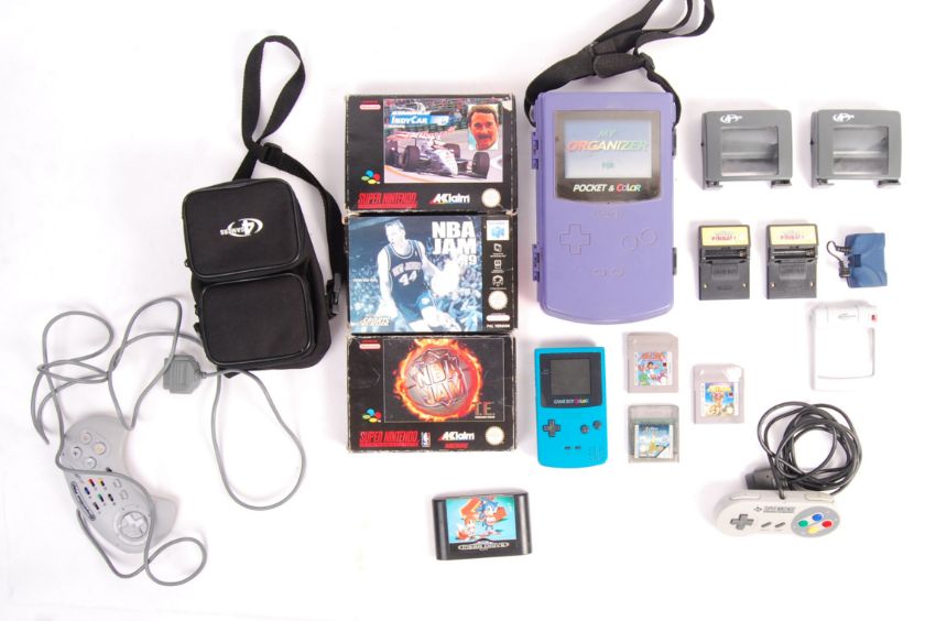 A collection of vintage Nintendo retro video game computer consoles, games and accessories to include boxed NBA Jam TE Tournament Edition, Nigel Mansell Indy Car, NBA Jam 99, original SNES Super Nintendo controller, Competition Pro controller, Game Boy Colour, Pokemon Pinball x2, Kid Icarus, Metroid II Disney Atlantis The Lost Empire and various Game Boy accessories. Along with a Sega Mega Drive Sonic The Hedgehog 2.
