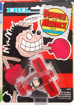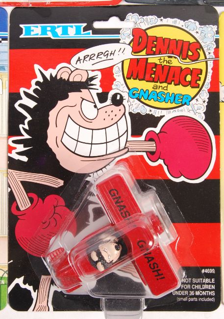 A collection of 7x original vintage Ertl made TV & Film related diecast models. Comprising: Batman Batmobile, Joker Van, Noddy Big Ears In His Plane, Postman Pat Mail Van, PC Pinkerton, Dennis The Menace and Gnasher car and plane. All appearing mint and sealed on original blister packaging, Great collection.