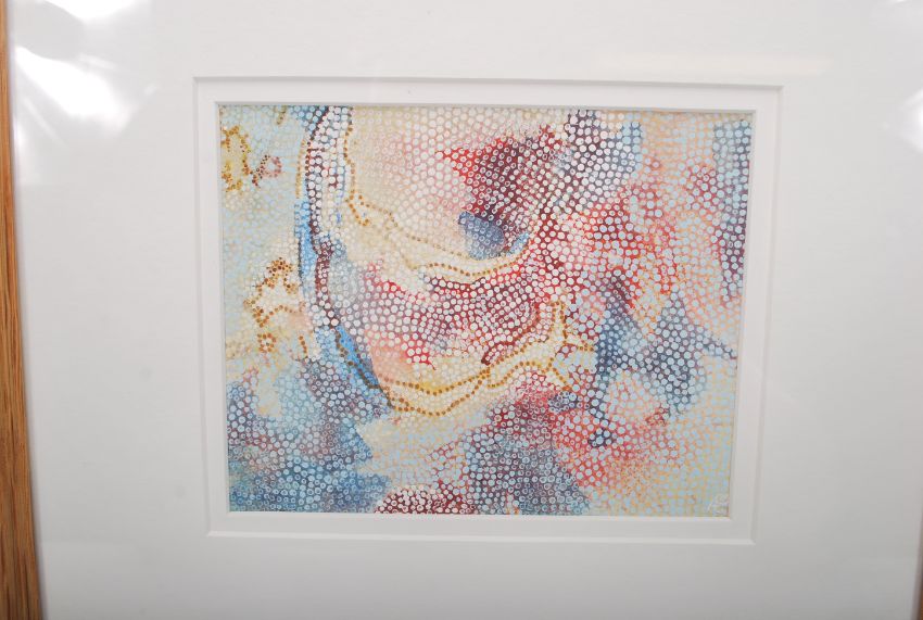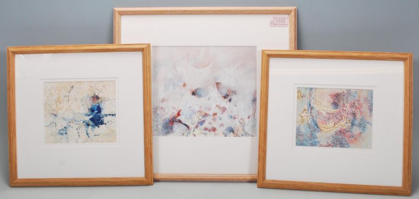 Anthony Curtis (born 1928) - A group of three abstract aboriginal style watercolour paintings on paper, each depicting colourful abstractions with layered paint. All signed. All framed.