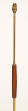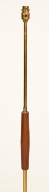 A vintage retro 20th Century teak and brass column standard lamp raised on a circular teak base. Measures 142 cm tall x 42 cm wide x 36 cm deep.