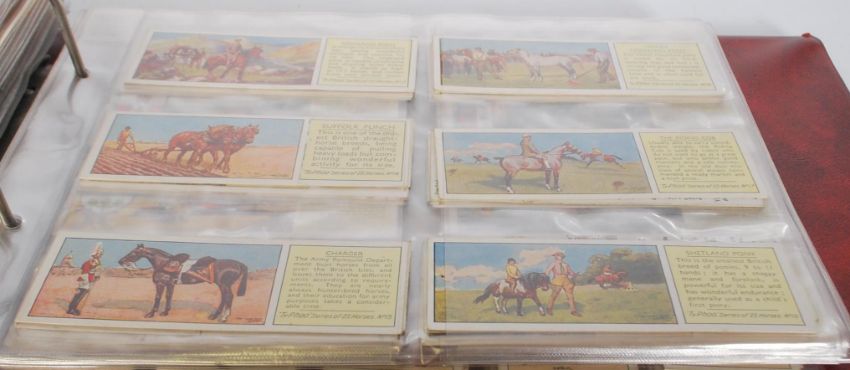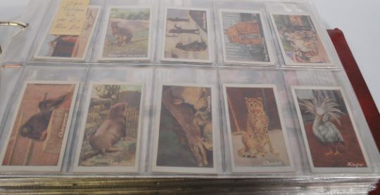 An album of vintage TyPhoo tea trade cards in full sets. The complete sets include "Thy.Phoo - Tipps, Doctor Who, Historical Buildings, Zoo Series, A Tale Of Two Cities, Make Up, John Halifax, 30 Pictures, Whilst We Sleep Series, Scenes From Lorna Doone, Wonder Cities Of The World, Animal Offence & Defence, Working On The Farm, Homes Of Famous Men, Famous Voyages, Characters From Shakespeare, Interesting Events In British History, Wild Flowers In Their Families Series One and Two, Horses, British Birds And Their Eggs, Important Industries Of The British Empire, The Swiss Family Robinson and Trees Of The Countryside.
