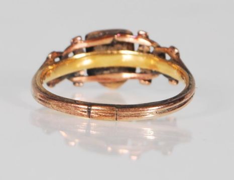 A hallmarked 19th Century Victorian 22ct gold ring having an unmarked armorial cartouche with twist knot design to the shoulders Hallmarked London 1860. Weight 2.5g. Size O.5.