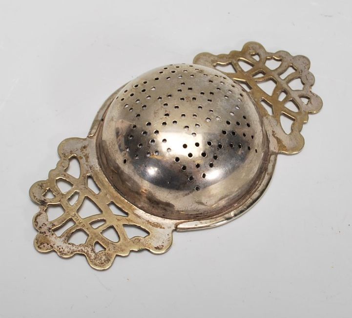 A collection of silver hallmarked and white metal items to include bottleneck, silver lid, tea strainer, button hook etc.