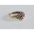 An English hallmarked 9ct yellow gold ring set with round cut white stone with decorative gold cross to the centre having a small ball finial with shaped angular shoulders. Hallmarked for Birmingham 375. Gross weight 3.8g. Ring size