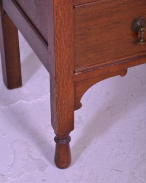 A 1920's pair of oak chest of drawers raised on squared legs with a bank of drawers having original ring handles together with another matching chest of drawers. Dimensions are 75cm x 88cm x 48cm
