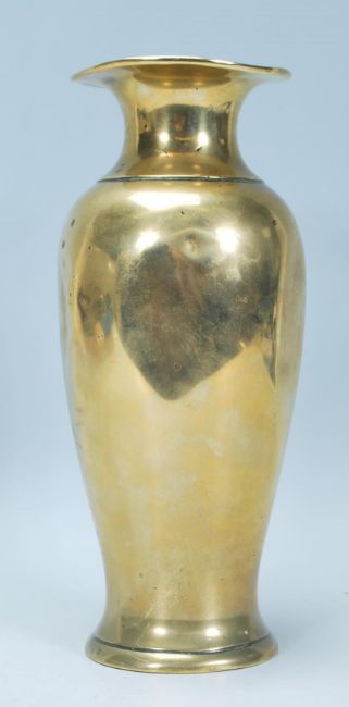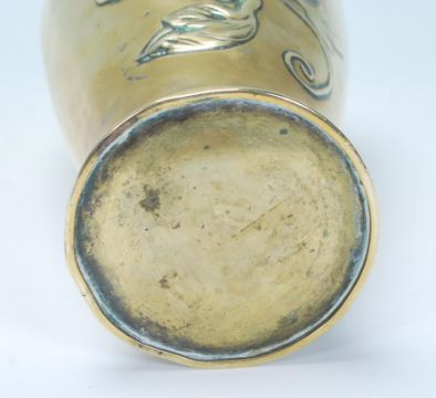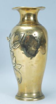 A 20th Century Chinese cast brass vase of baluster form having raised floral branch decoration with flared rim to the top. Measures 24 cm tall.