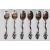 A group of six 20th Century stamped 830 silver tea spoons each having scrolled design handles with finials to the tops, the bowls being engraved with scrolled details. Total weight 61.8g.