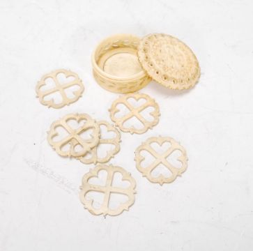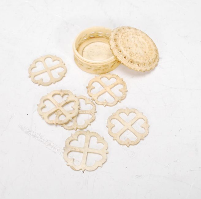 Sewing Related - A small collection of sewing items dating from the early 20th Century to include an Edwardian ladies lace cover, a fine filigree pin cushion book, a silver thimble hallmarked for Birmingham date letter O 1988 with makers mark for William H Manton, a well carved resin floral pin box, ivory carved box, leather bound box, a selection of sweet heart postcards, a very fine wedding vale, other lace work etc.