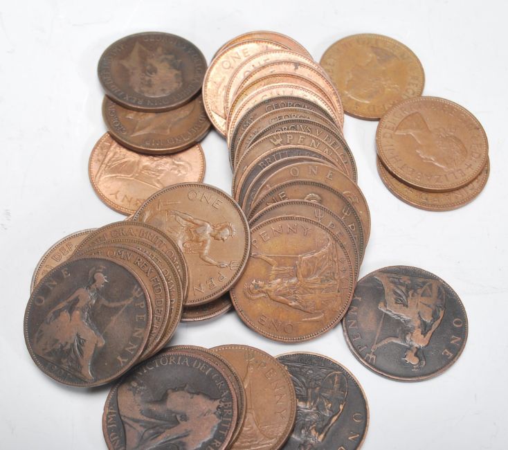 A collection of pre decimal 20th Century Great British coins mostly dating from the mid 20th Century to include florins, crowns, sixpences, farthings etc.