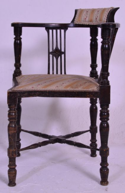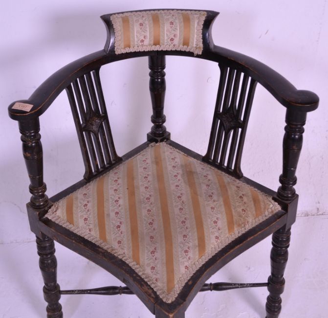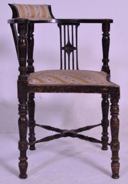 A late 19th century mahogany corner chair with pierced and carved splats raised on turned supports united by stretchers. Measures 76 cm high x 63 cm wide x 60 cm deep.