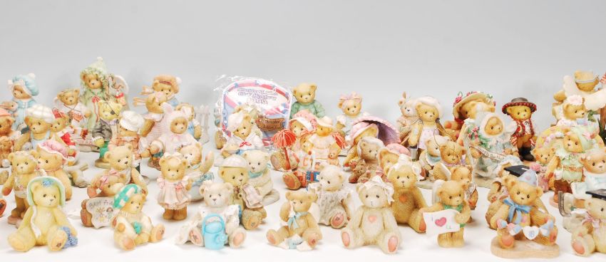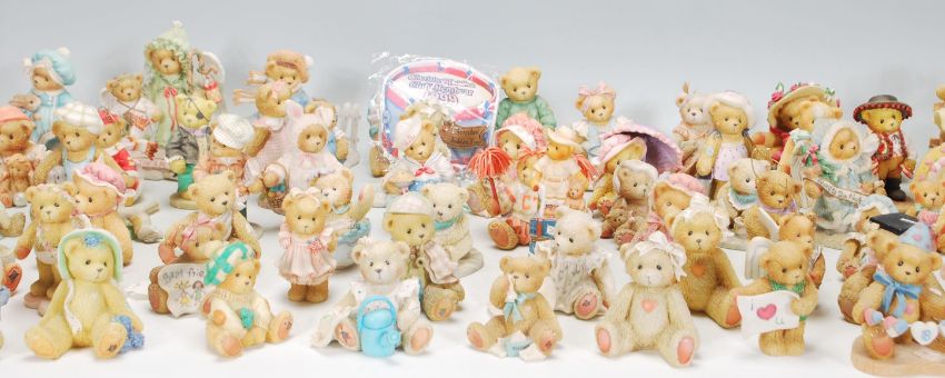 A large collection of Cherished Teddies of varying models and sizes to include 'Grace', 'Beverly And Lila', 'Robyn', 'Jo and Dee', 'Debbie', 'Cherish', 'Trudy', 'Brent', 'Janet, 'Irma', '18 Birthday', 'Kate' and many more. All bearing marks to base with most being numbered. highest measures 11 cm.