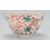 A Chinese centrepiece bowl of footed flared form being hand painted with florals and mythical beasts in red and green, having a crenelated gilt rim to the top. Measures 12 cm tall, 21 cm diameter.
