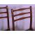 A good set of retro 20th Century teak wood ladder back dining chairs having three strut support backrest with fabric seat pad, raised on curved tapering legs.  Measures 90 cm high  x  47 cm wide  x  42 cm deep