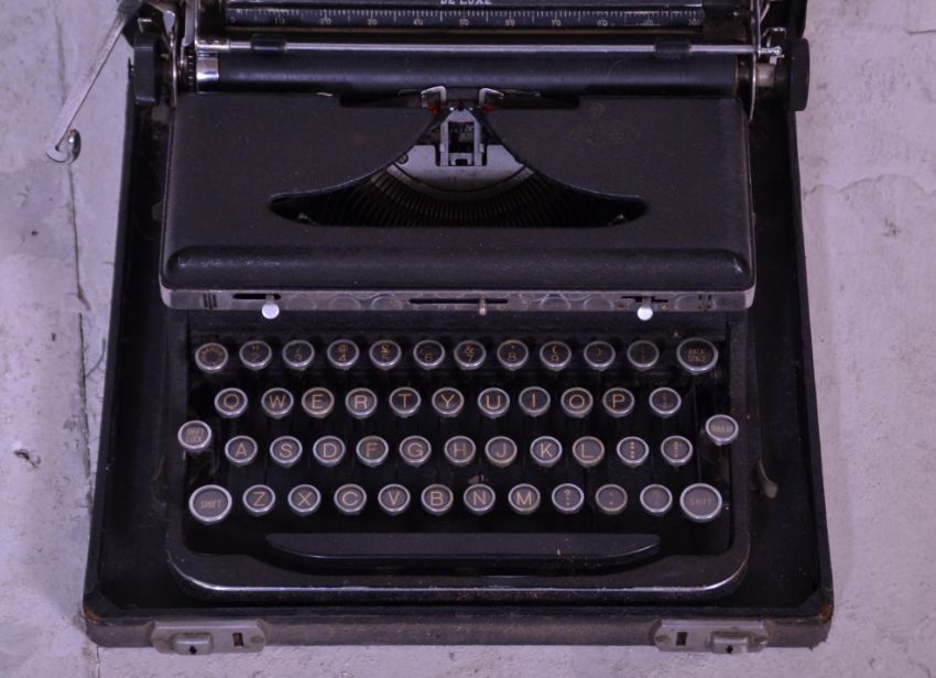 An early 20th Century vintage Royal De Luxe portable cased typewriter set in hard carry case.