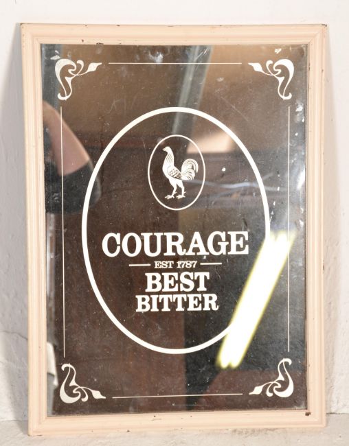 A mix group of wall hanging mirrors to include one in the form of a Concord plane, pub advertising mirror for Courage Best Bitters and one of square form having a iron wirework surround. Measures 90 cm  x  80 cm.