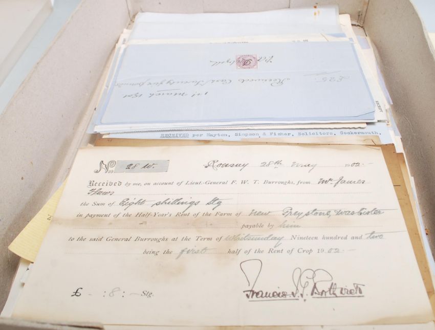 SCRIPOPHILY Share certificates, invoices, commercial paperwork & other ephemera. Box with large quantity from Queen Victoria to King George VI. Many with Fiscal Stamps affixed. Wide range of interesting / unusual paper items.