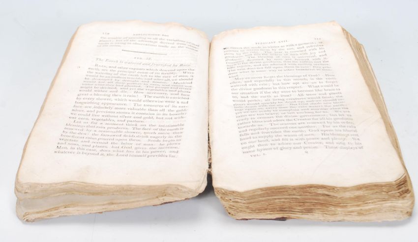 An interesting pair of 17th Century antique leather bound book. One entitled 'The Destruction Of Troy, The First Book' sadly missing its front cover. The other sadly missing its titled page, page headings read 'Reflections for...' then months of the year starting with January and finishing at June. Both A/F.   Measures 23 cm x 14 cm.