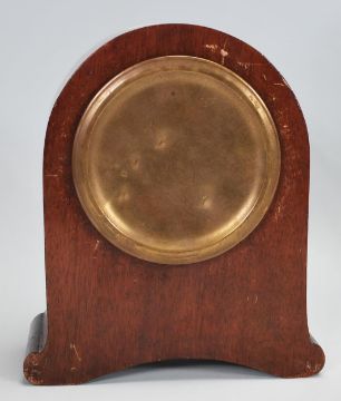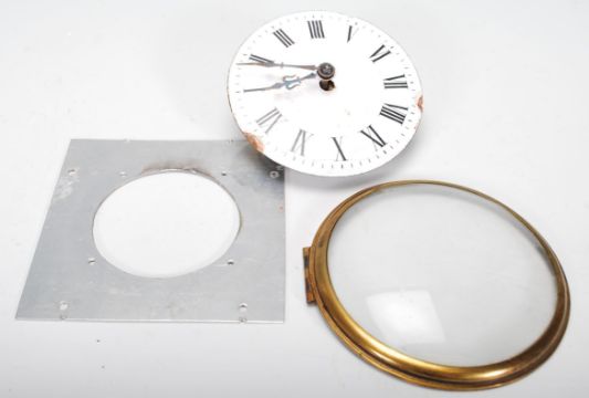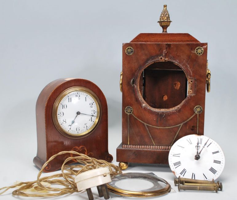 A pair of 20th century mantel clock having white enamel face. The small dome top clock has wind up spring movement with arabic numerals and the large clock has roman numerals with electronic movement(AF)