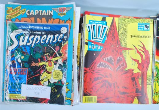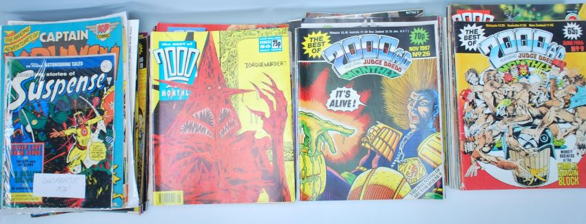 Comics - A collection of vintage comics to include The Avengers Master Of Kung Fu, The Transformers, DC The Witching Hour, Amazing Stories of Suspense, 2000AD comic book magazines dating from the 80's through to 90's. Multiple issues featuring Judge Dredd. Together with two Astounding Stories comics.