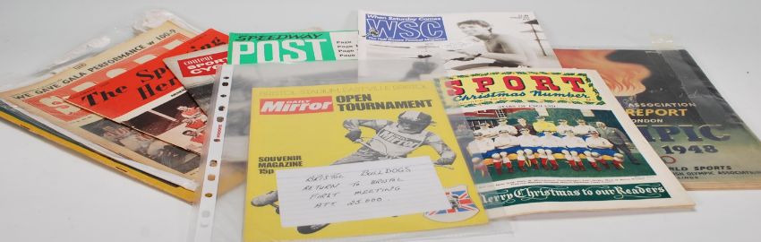 Sporting Interest - A collection of sporting related magazines to include The Official Report Of The London Olympic Games 1948, Sport Christmas Number 1948, Sport Express Stoke City 1954-55, Coureur Sporting Cyclist 1960, Speedway Post, Sports Final Learn Cricket With The Champions etc. Measures 31cm x 23cm.
