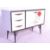 A stylish vintage retro 20th Century sideboard credenza finished in white with black boarders and a red painted rose. The sideboard having twin cupboard doors to the right with a bank of three drawers all having curved brass handles. Raised on shaped tapering supports. Measures 80 cm high x 122 cm wide x 44 cm deep.