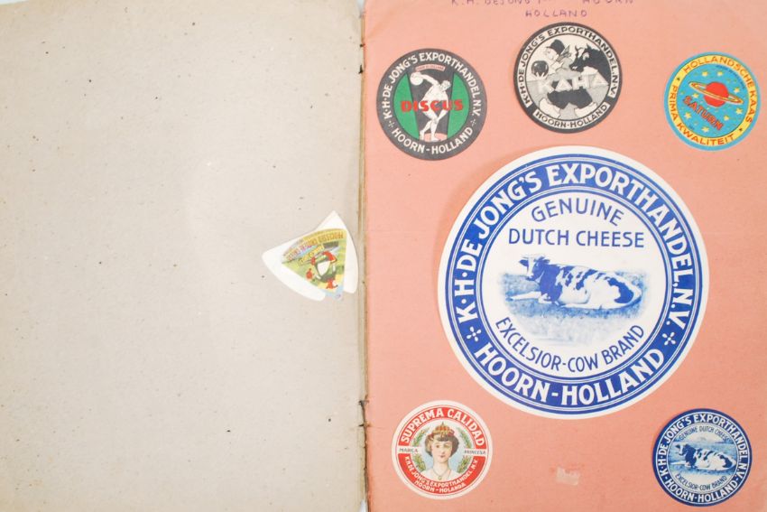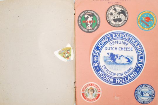A collection of various first day cover stamps with some loose examples with many on envelopes, unused examples with some still holding face value. Together with a small selection of cigarette trade cards and albums / scrapbooks of mostly European cheese labels.
